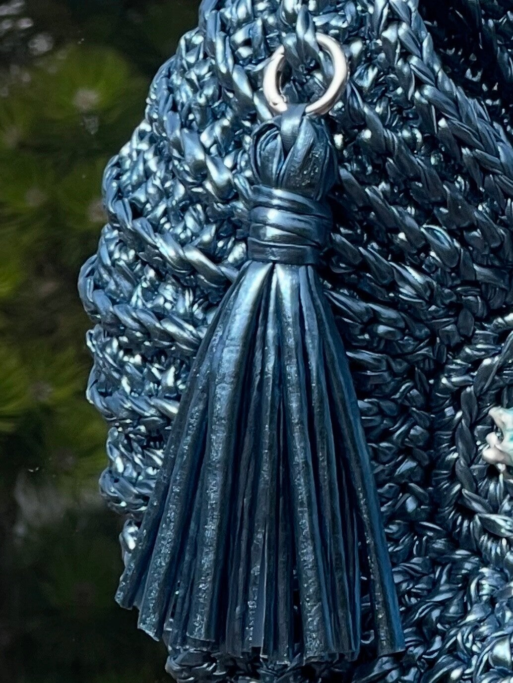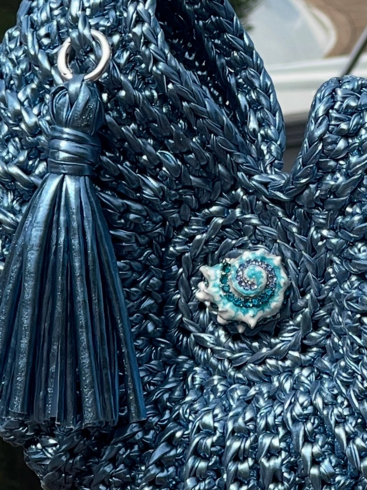 Handgemaakte Gehaakte Tas – Exclusief Ammoniet design in Zeeblauw leather look