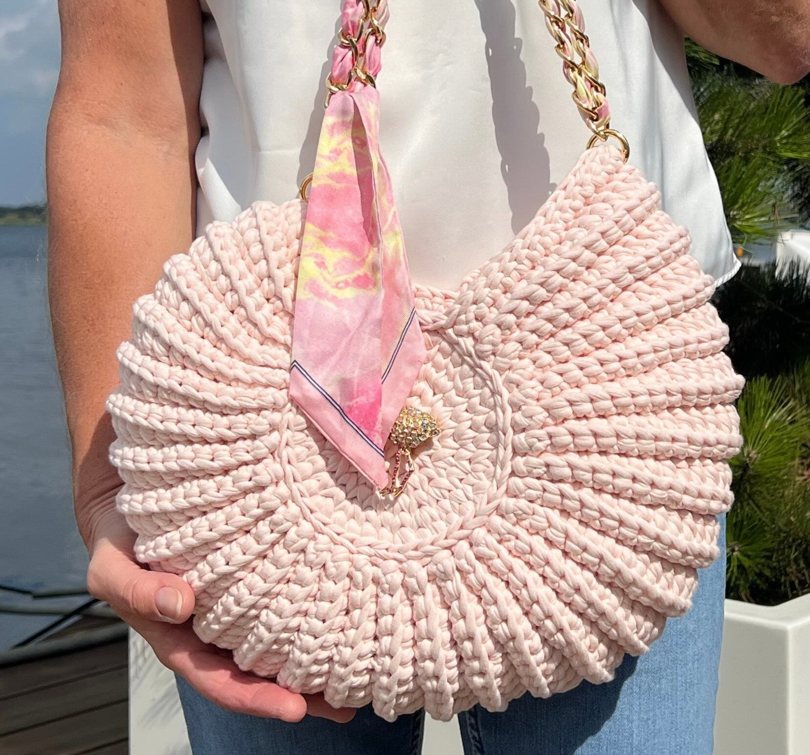 Handgemaakte Gehaakte Tas – Exclusieve XL Schelp in Pink