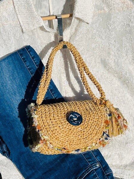 Geef je outfit een speelse, bohemian touch met deze prachtige handgehaakte tas “Boho”.