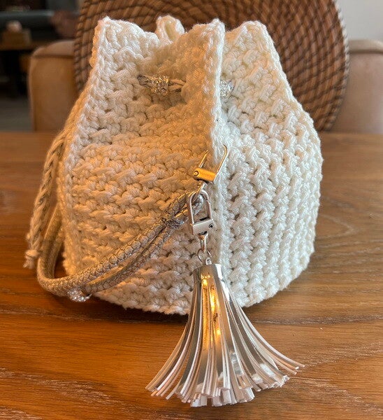 Ga stijlvol de avond in met deze unieke gehaakte cocktail tas. Met oog voor detail en liefde voor handwerk gecreëerd, speciaal om jouw look een elegante finishing touch te geven.