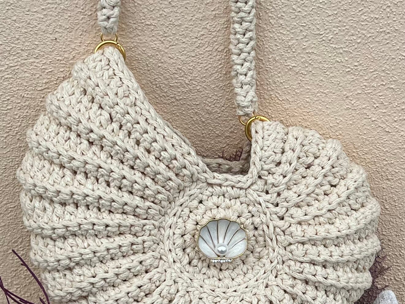 Handgemaakte Gehaakte Tas – Exclusieve Schelp in de kleur Crème