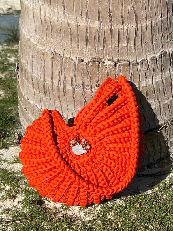 Handgemaakte Gehaakte Tas – Exclusieve Schelp in de kleur Oranje