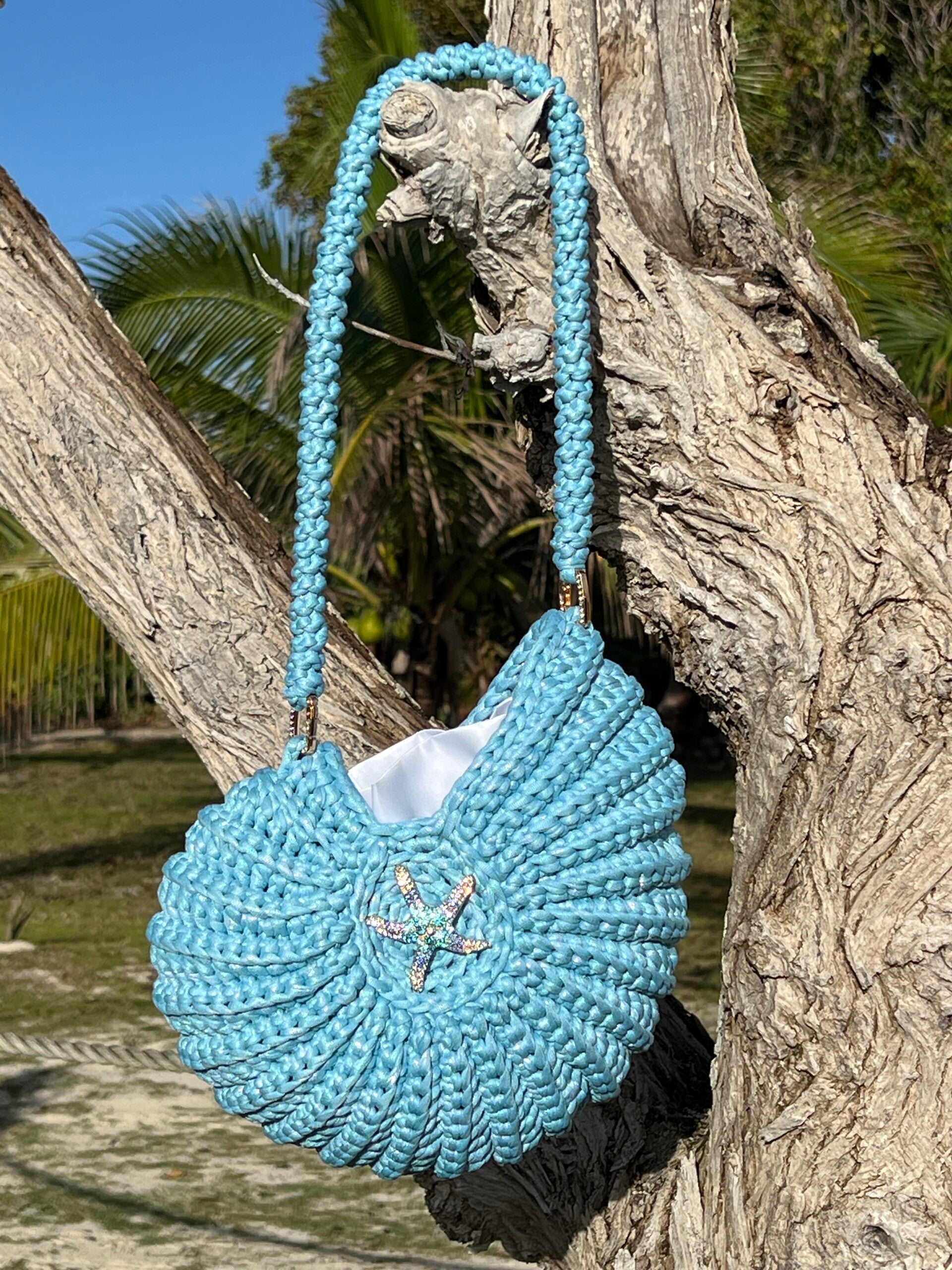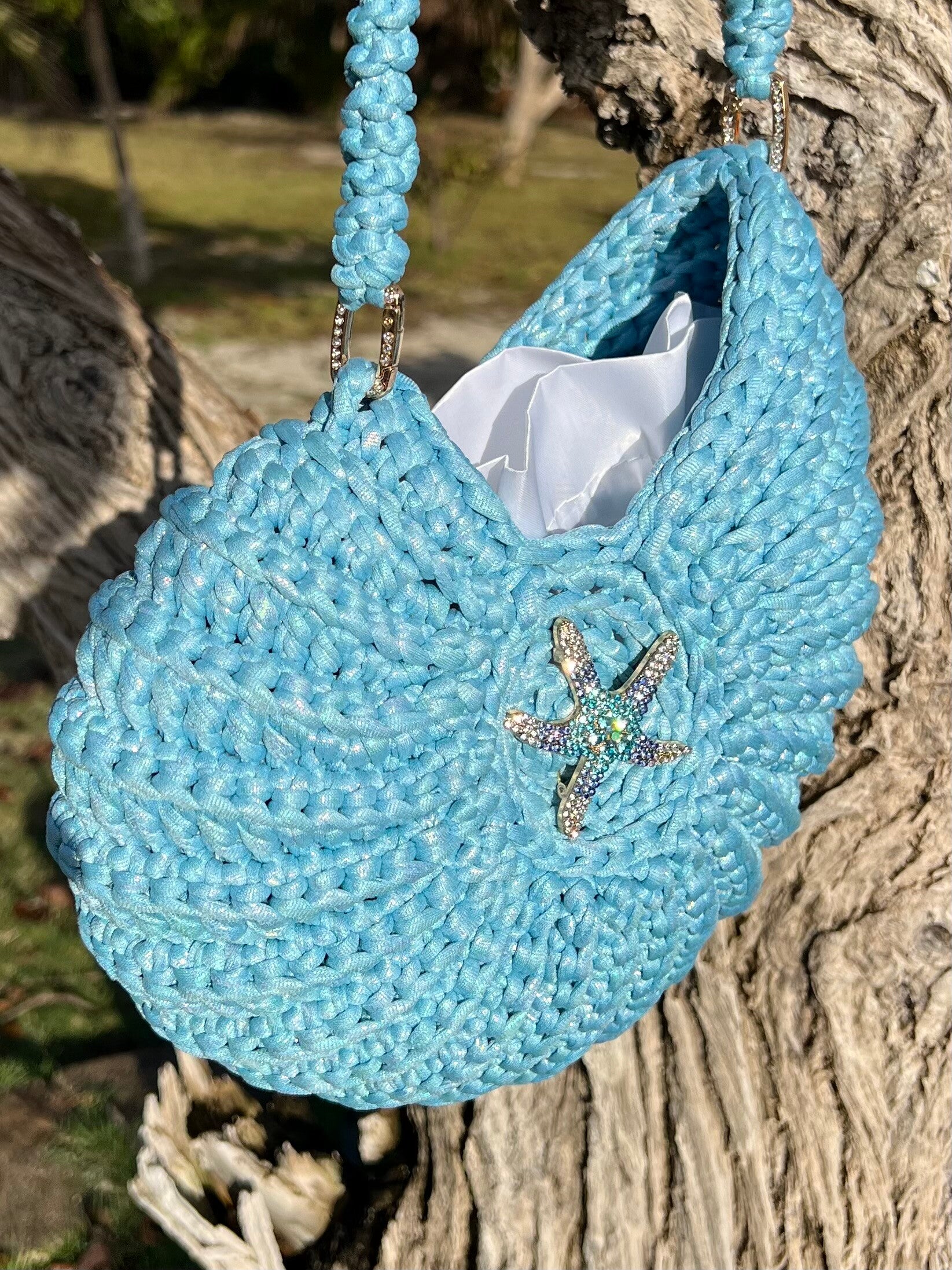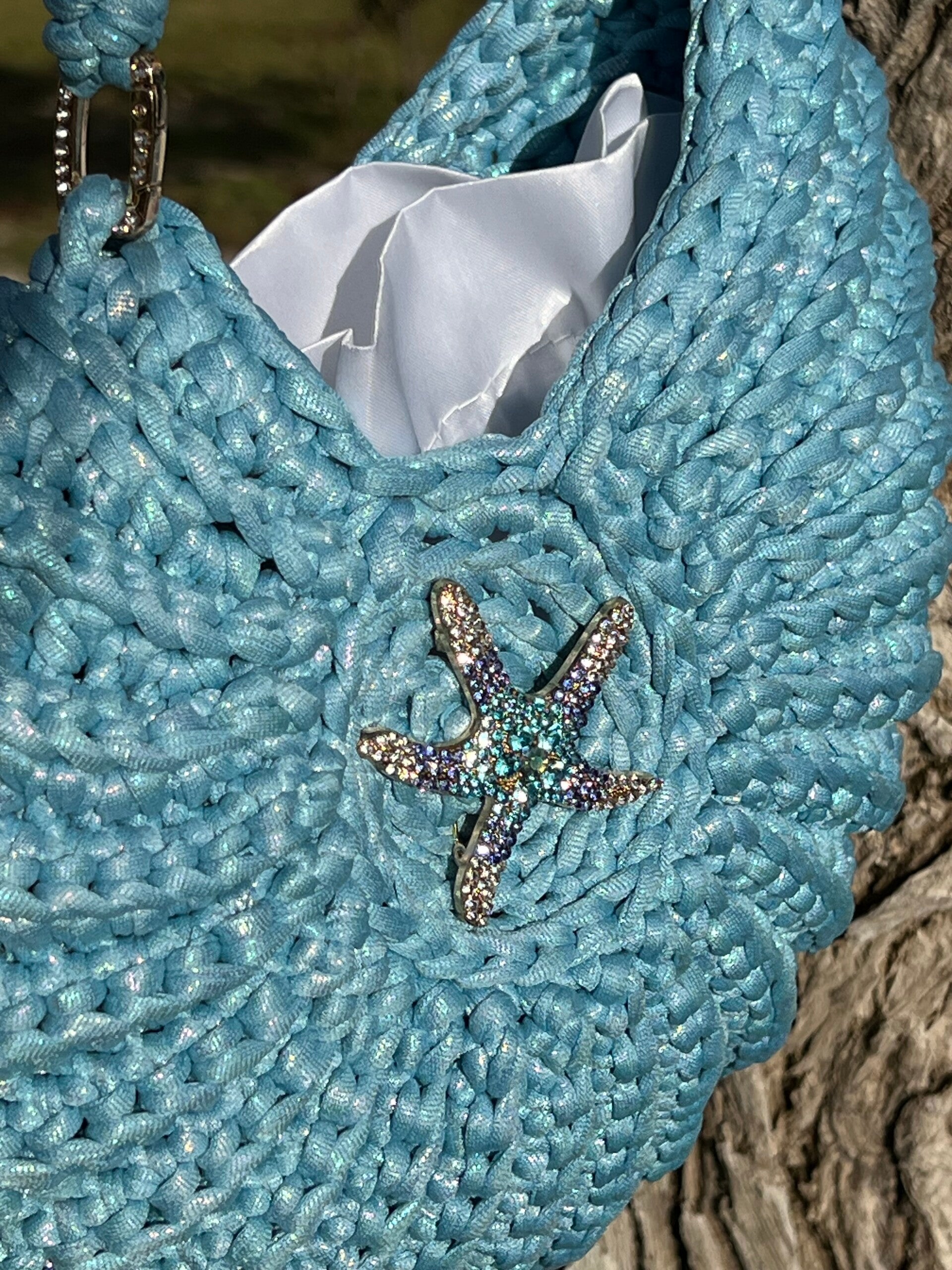 Schelp tas in Pastel blauw Iriserend, Mermaid yarn