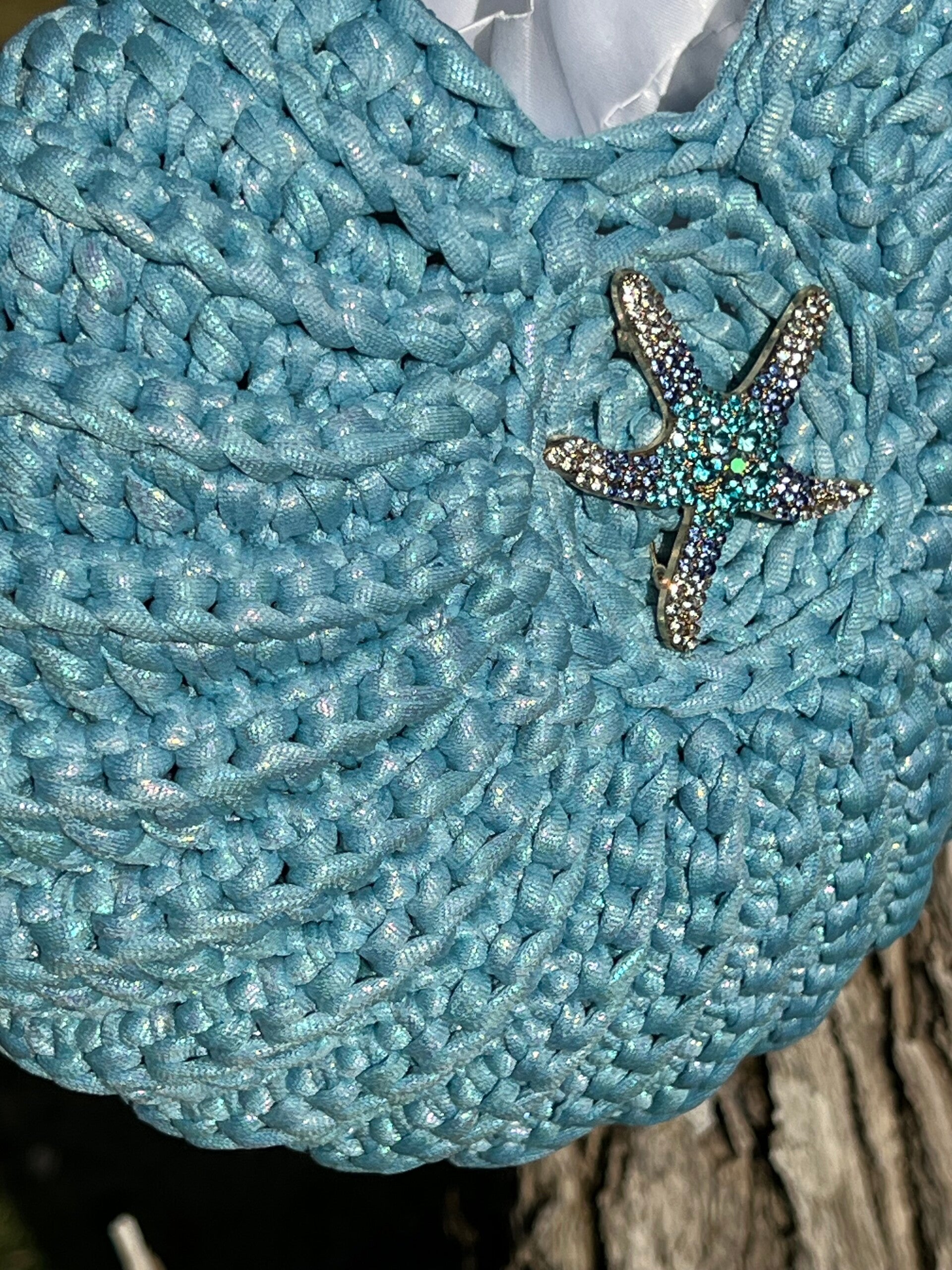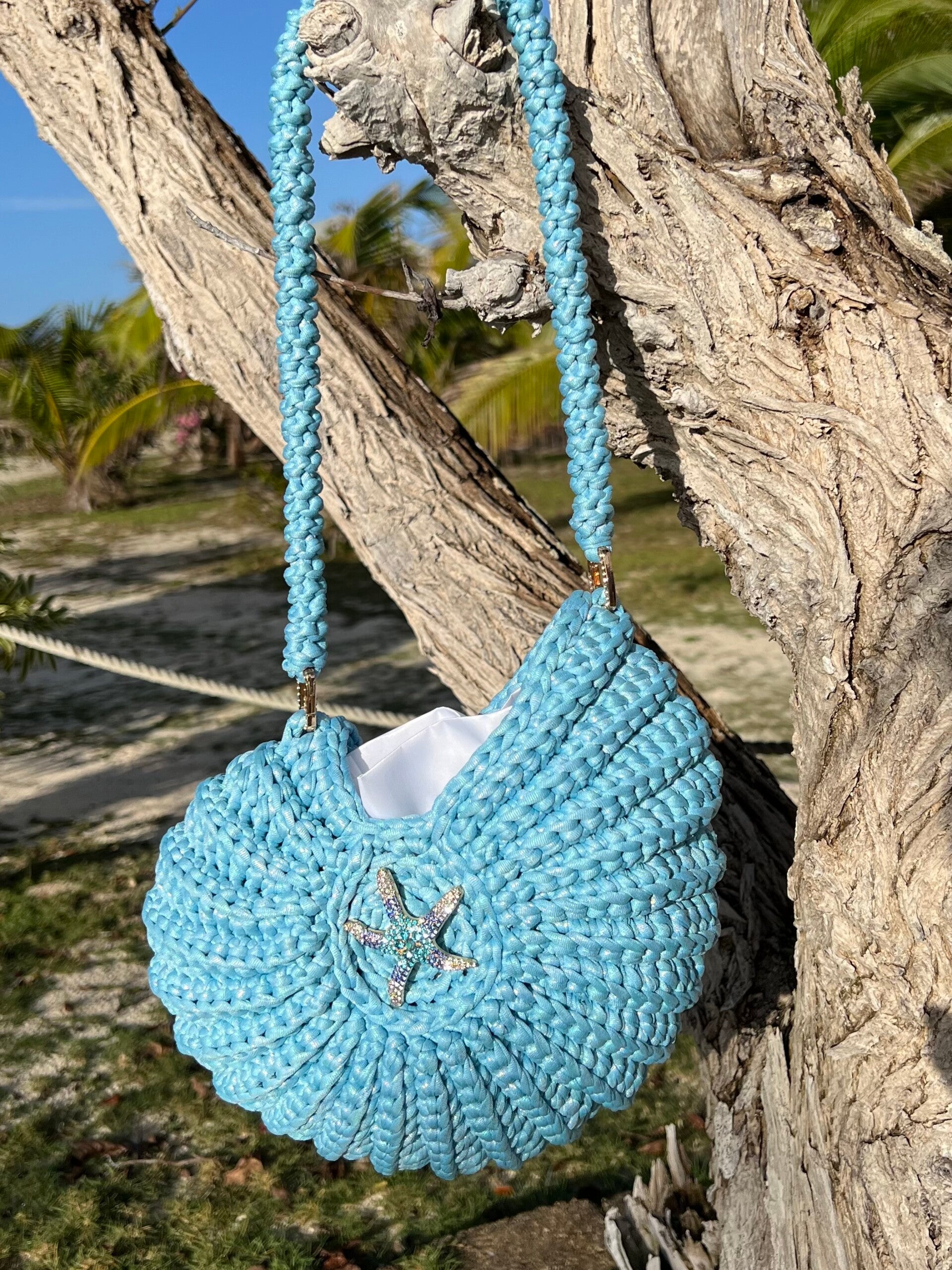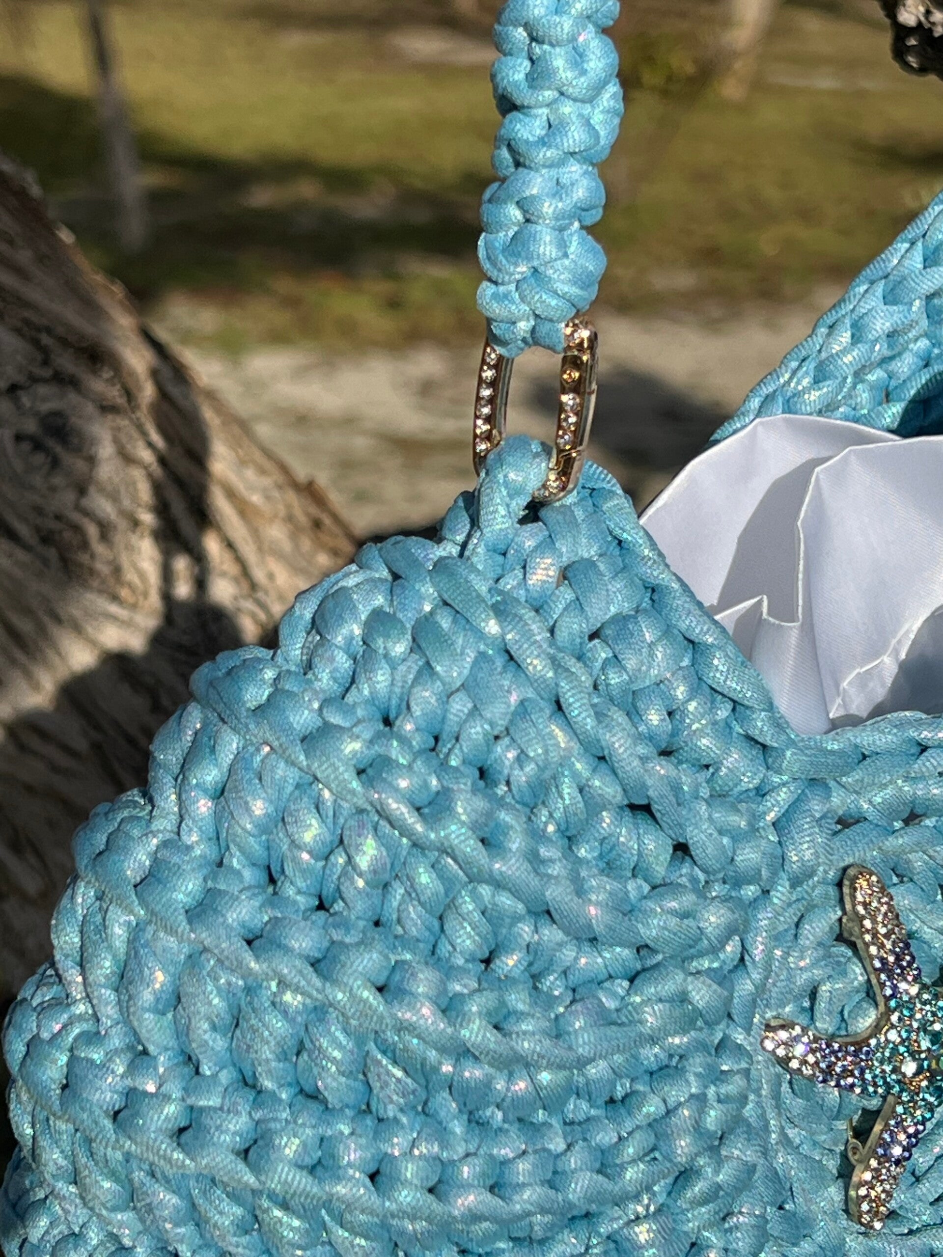 Schelp tas in Pastel blauw Iriserend, Mermaid yarn
