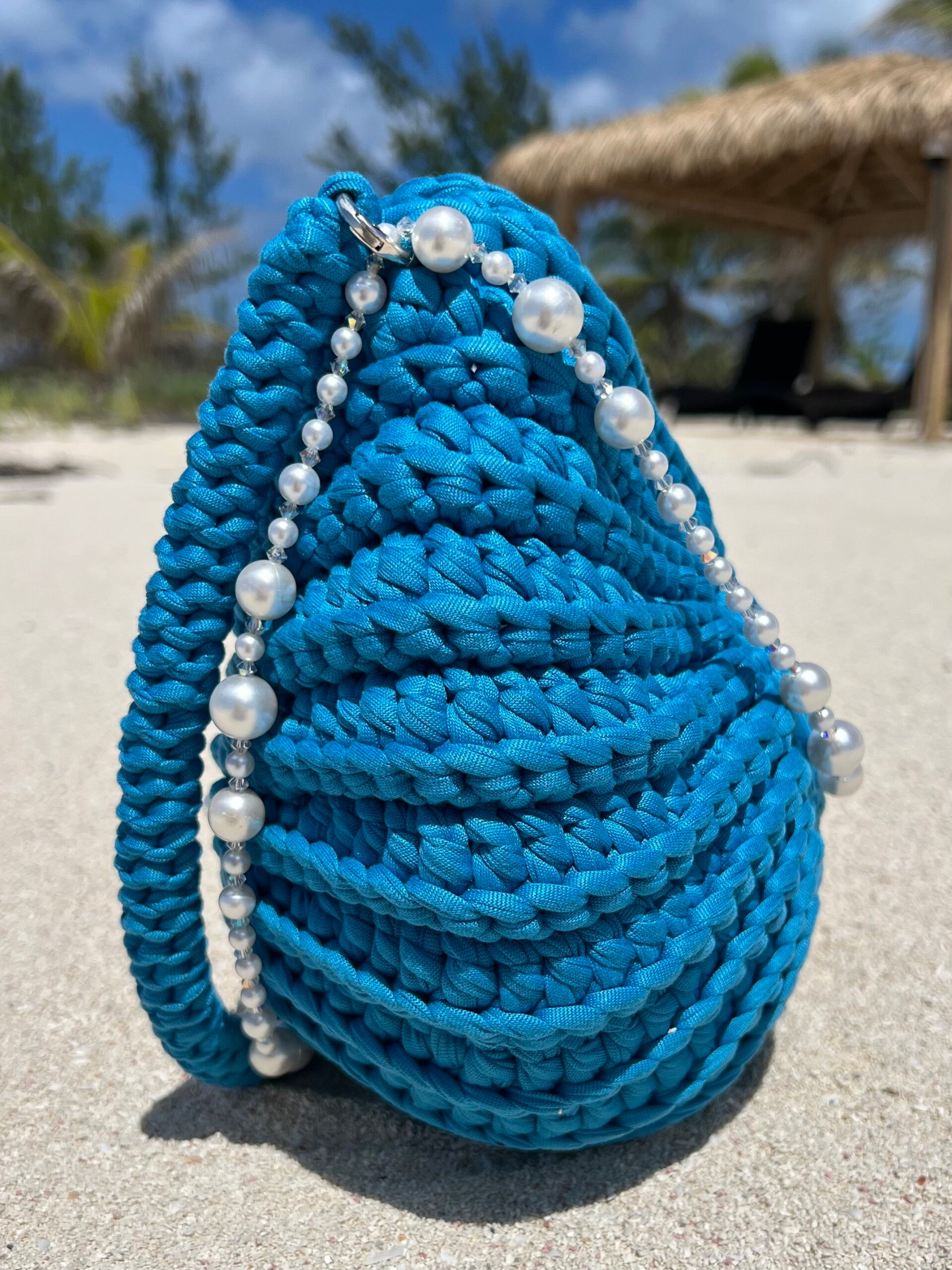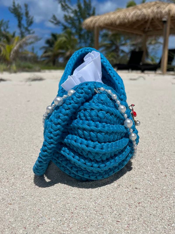 Handgemaakte Gehaakte Tas – Exclusieve Schelp in de kleur Ocean blue